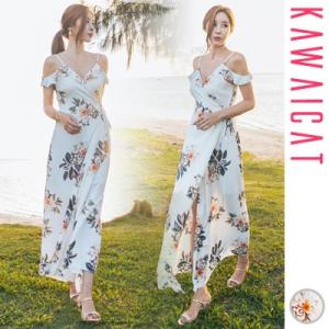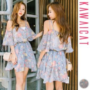 オフショルダー花柄ワンピース
