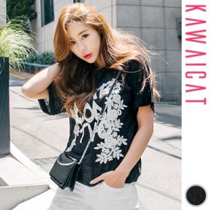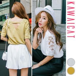 袖レースブラウス