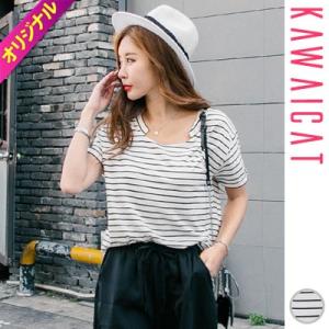 ボーダーアンバランス丈Tシャツ